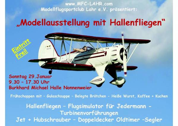 le Modellflugsportclub de Lahr nous invite à sa rencontre amicale indoor qui se déroulera le dimanche 29 Janvier de 9h30 à 17h30 à la Burkhard Michael Halle de Nonnenweier